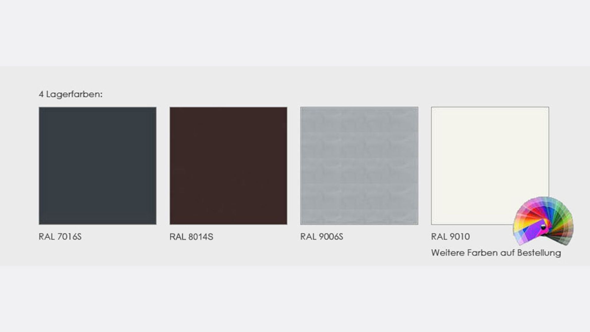 Wählen Sie Ihre Terrassenüberdachung aus Alu in Top-Farben wie Anthrazitgrau oder Reinweiß. Weitere Farben auf Anfrage.