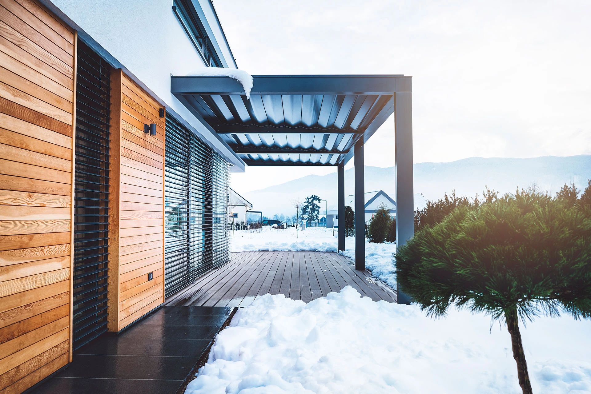 Günstige Alu Terrassenüberdachung im Winter