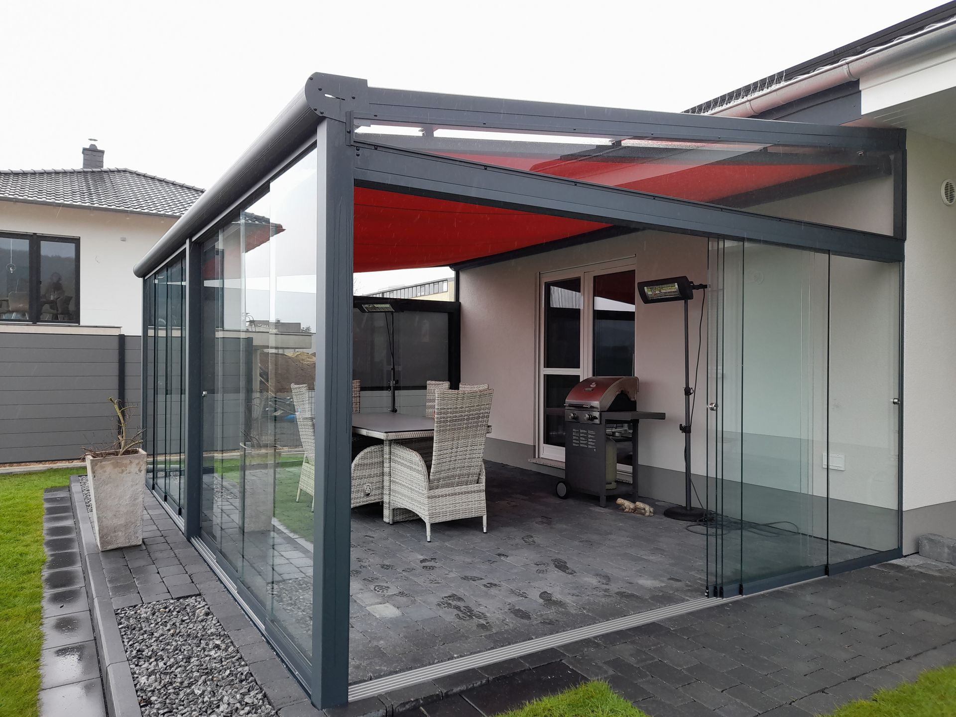Entdecken Sie unsere hochwertigen Wintergärten* für Terrassen aus Aluminium. Diese stylischen und funktionalen Überdachungen bieten ganzjährigen Schutz und Komfort im Freien. Mit modernem Design, robuster Konstruktion und vielfältigen Anpassungsmöglichkeiten integrieren sich unsere Wintergärten* nahtlos in jede Architektur. Genießen Sie geschützte Stunden auf Ihrer Terrasse, abgeschirmt von Sonne, Regen und UV-Strahlen. Unsere pflegeleichten Wintergärten für Terrassen versprechen Langlebigkeit bei minimalem Wartungsaufwand. Verwandeln Sie Ihre Terrasse in einen gemütlichen Wohlfühlort – kontaktieren Sie uns für eine persönliche Beratung.